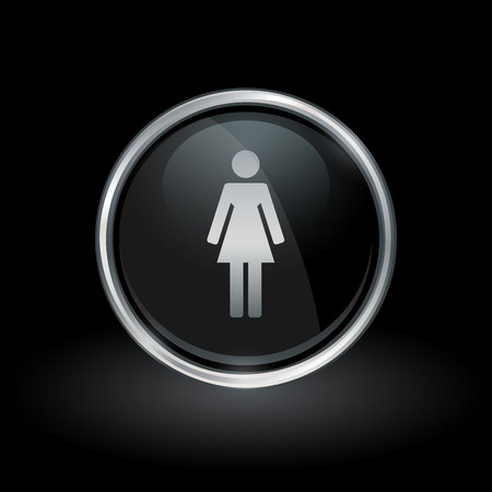 丸いクロム内部の女性シルエット アイコンと女性トイレ シンボル銀と黒のボタンのイラスト素材 ベクタ Image