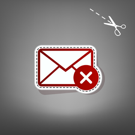 メール追加マークとサイン イラスト ベクトル ハサミで灰色の背景に影を紙からアップリケの付いた赤いアイコン のイラスト素材 ベクタ Image
