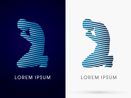 祈り 祈るサイン デザインのシルエット ベクトル ブルーライン波水 ロゴ 記号 アイコン グラフィックを使用しています のイラスト素材 ベクタ Image