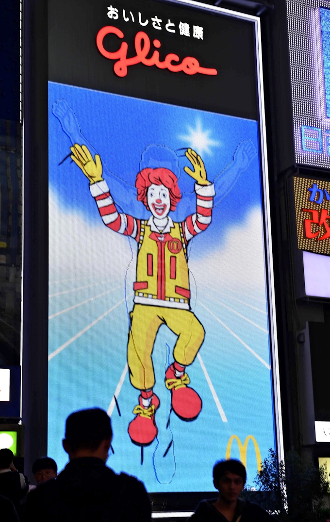 グリコ看板にドナルド登場 連携商品に合わせ 日本経済新聞