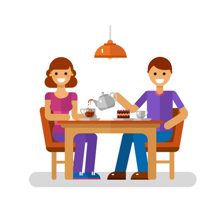 男と女のベクトル フラット イラストのカフェでコーヒーを飲みます のイラスト素材 ベクタ Image