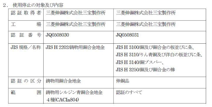 三菱伸銅 日本品質保証機構よりjisマーク使用の一時停止通知を受領 日本経済新聞